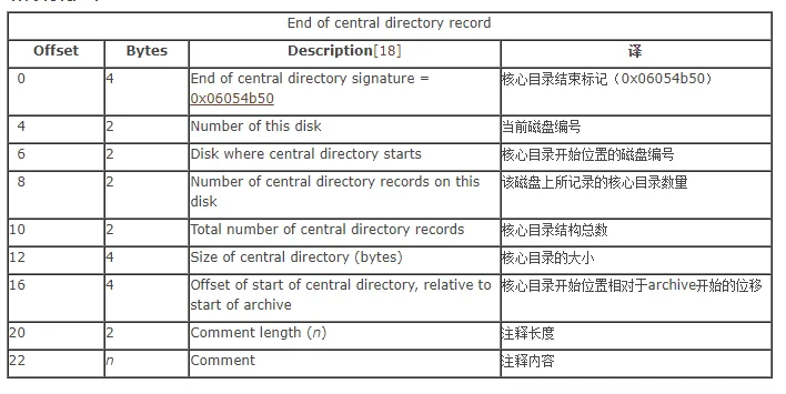 目录结束标识存在于整个归档包的结尾,用于标记压缩的目录数据的结束,结构如下: