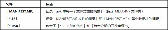 v1签名后会增加META-INF文件夹,其中会有如下三个文件:
