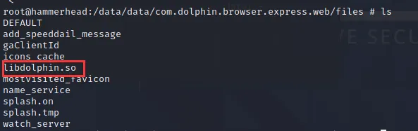 此时我们知道了libdolphin.so文件的存放位置,目录为:/data/data/com.dolphin.browser.express.web/files,这样我们只需要将我们制作的libdolphin.so去替换原文件即可。