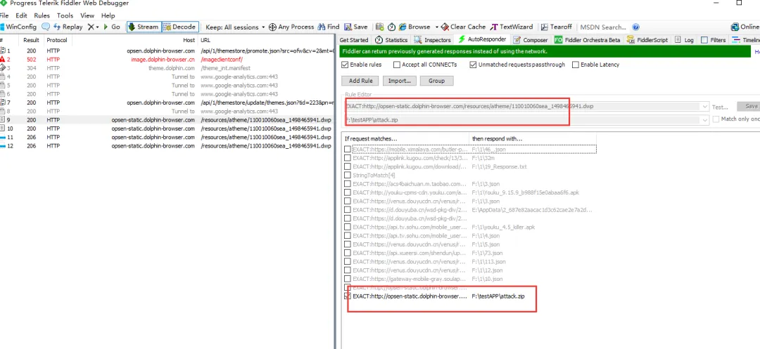 然后我们只需要对海豚浏览器下载主题的包进行劫持替换即可。