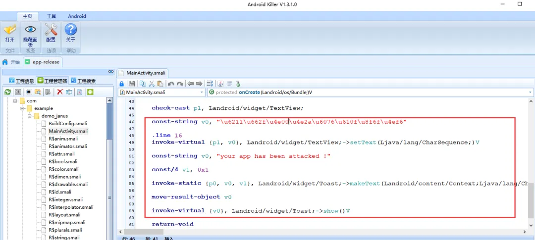我们便得到了app-release.apk文件,我们再通过AndroidKiller去修改源文件的代码,然后重新打包。