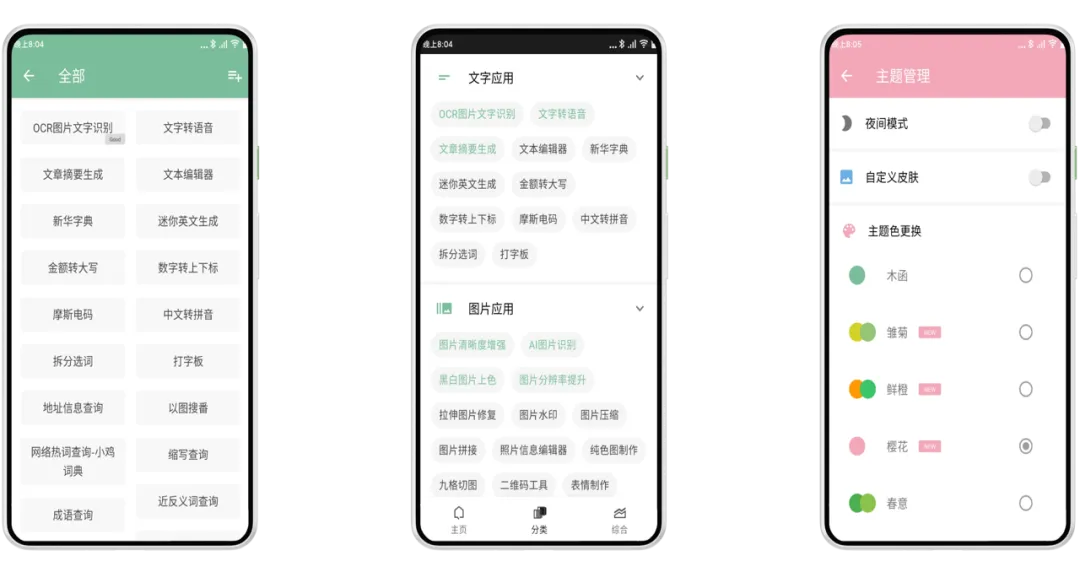 包含的功能都是些小众且直接痛点的功能,比如OCR文字识别、图片压缩、九宫格切图、以图搜图、时间屏幕