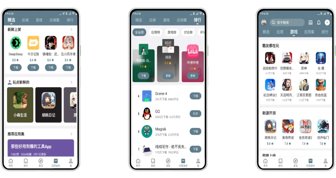你可以在这里看到开发者刚发布的新鲜的应用,也可以查看到各种精选的优质应用,点击就可以下载。