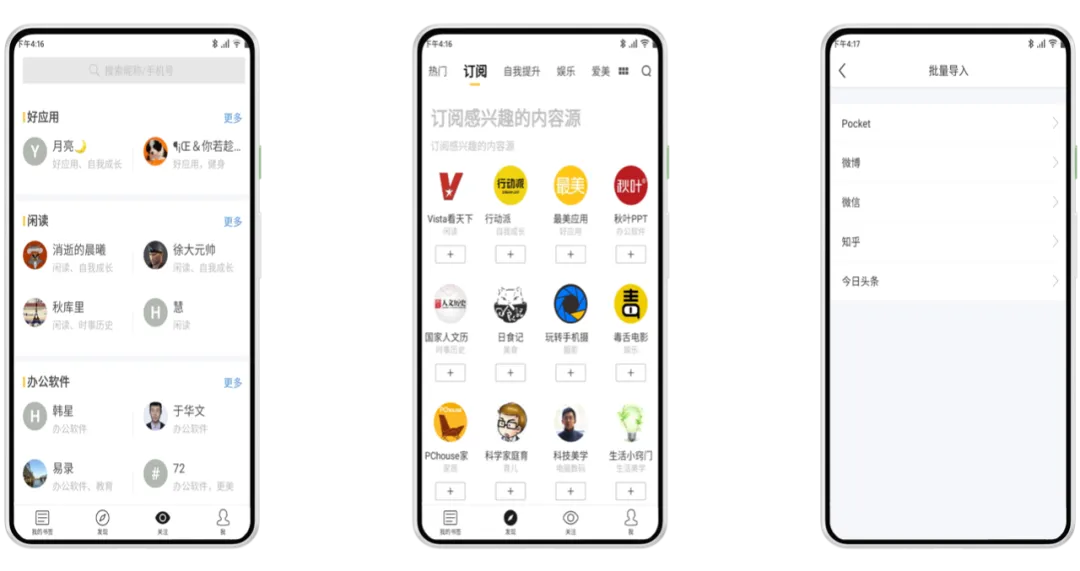 软件干货、健身干货、运营、产品、宠物等等,同时你也可以批量导入微博、头条、知乎等平台的收藏内容。