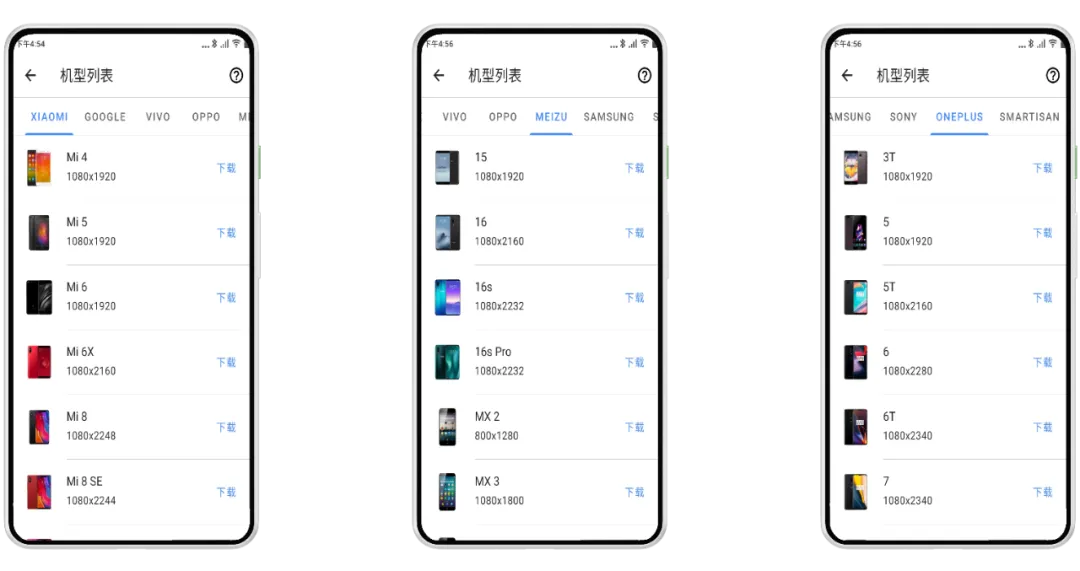 索尼、一加、锤子、苹果、华为、HTC、摩托罗拉、联想、LG、诺基亚、REALME