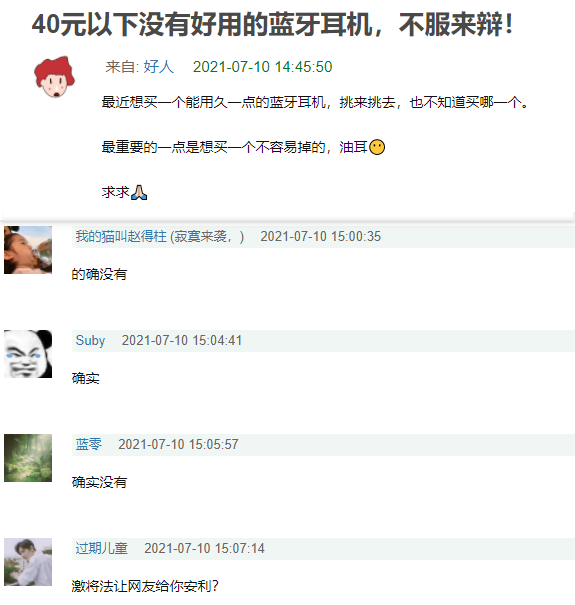 毕竟当你虚心的发帖询问“xxx元以下有哪些好耳机”时,可能压根没人理你,不得不说这招激将法确实妙…