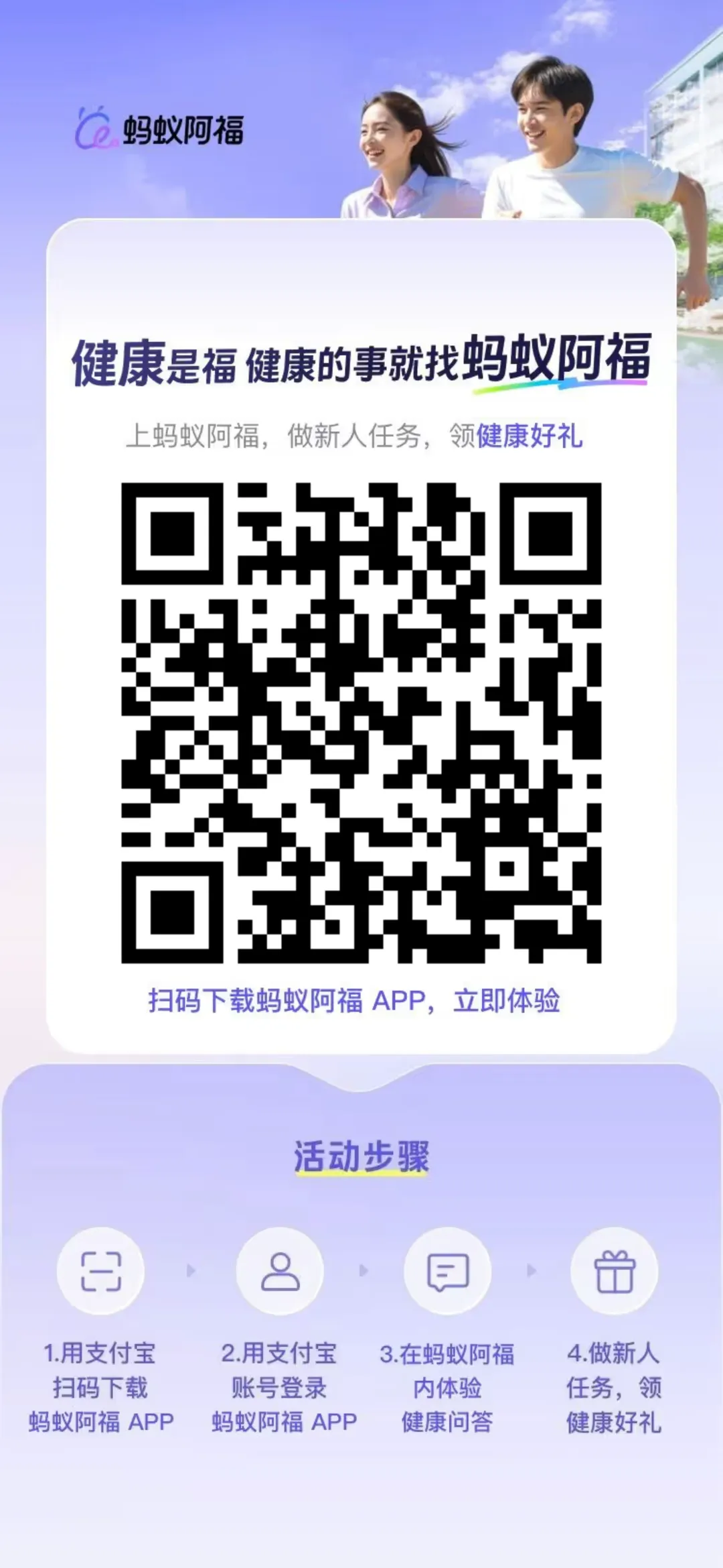有支付宝账号的朋友,也可通过支付宝扫码下面二维码下载,使用支付宝账号登录,领取你的专属家庭健康管家。