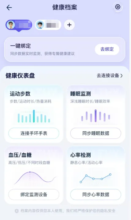 值得说明的是,在健康档案里,阿福有说明:档案内容仅供您本人使用,我们将严格保护您的隐私安全。