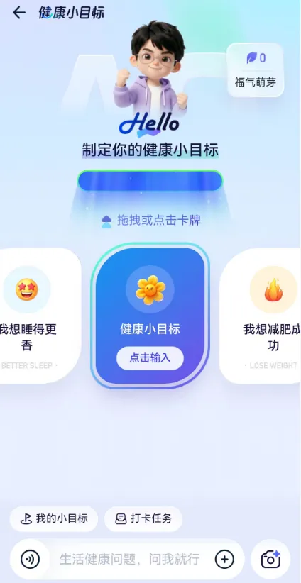 健康小目标功能,可以制定你的健康小目标,让我们一起成为更好的自己。例如:体重控制,减掉小肚子;减少焦虑;提升注意力等等。