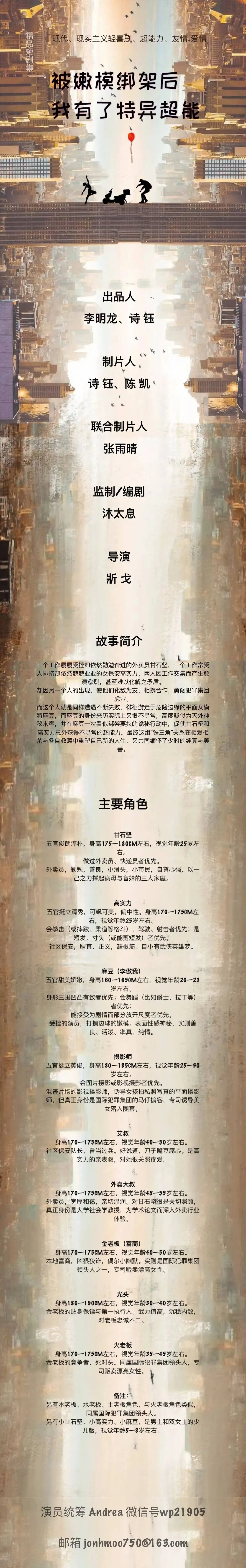 请发资料PDF+近期自我介绍视频+演戏视频至微信,并备注角色,谢谢!