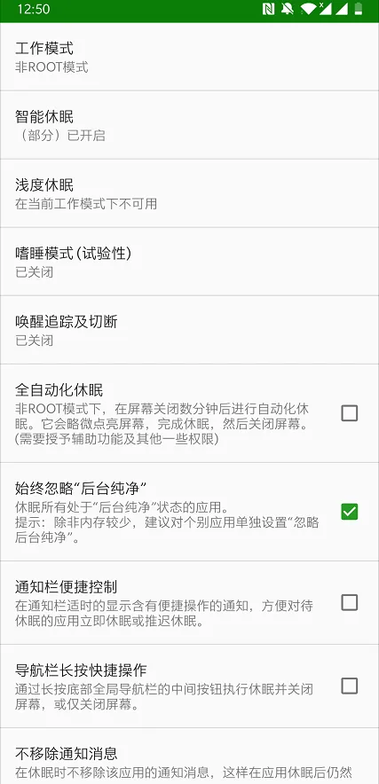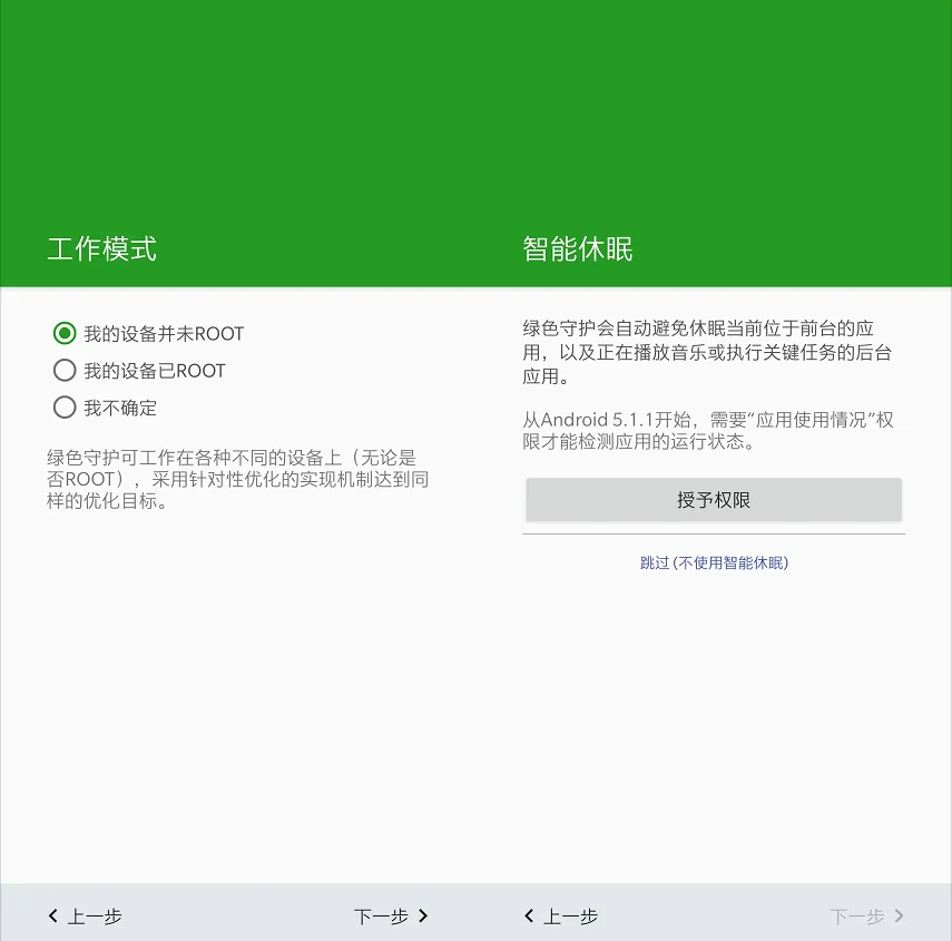 为了避免”误杀“正在使用中的应用,建议大家开启智能休眠,只需要赋予一个”应用使用情况“的权限即可,请放心使用。