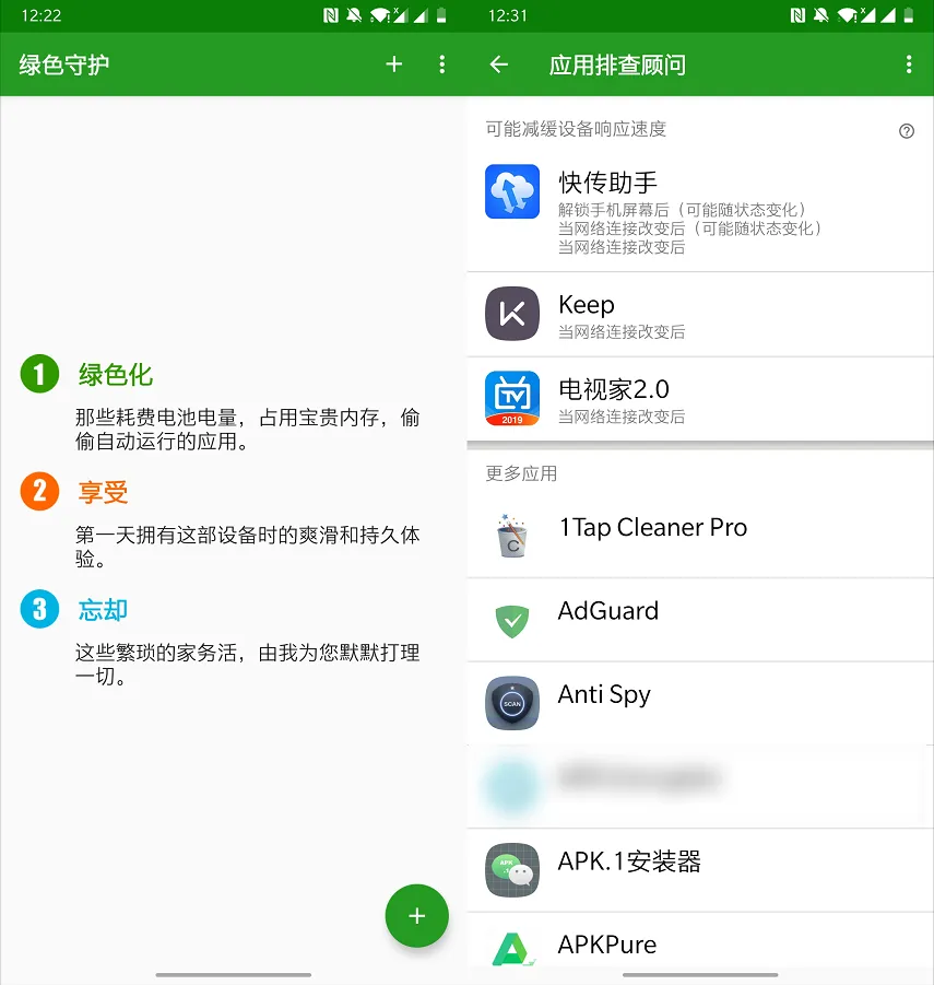 亲测通过这款APP绿化/休眠的应用,都不会在后台自动运行,接收不到任何相关的推送,软件虽然会自动帮你识别一些有问题的应用,但还是会有很多漏网之鱼,建议大家手动进行精准的绿化,从而彻底杜绝APP后台自启的状况。