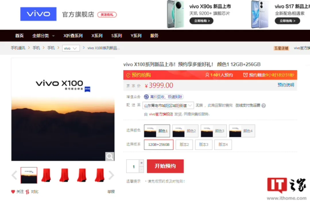 vivo X100 系列手机已经上架京东 vivo 官方旗舰店开启预约,让人意外的是新机的售价已经直接公布 ——3999 元起(12+256GB)。