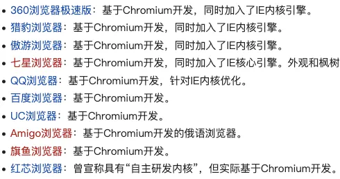 目前国内那一大票浏览器,基本上都是基于 Chromium 的。