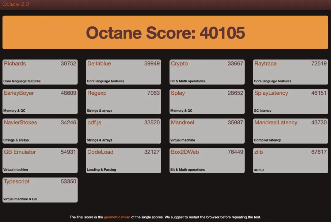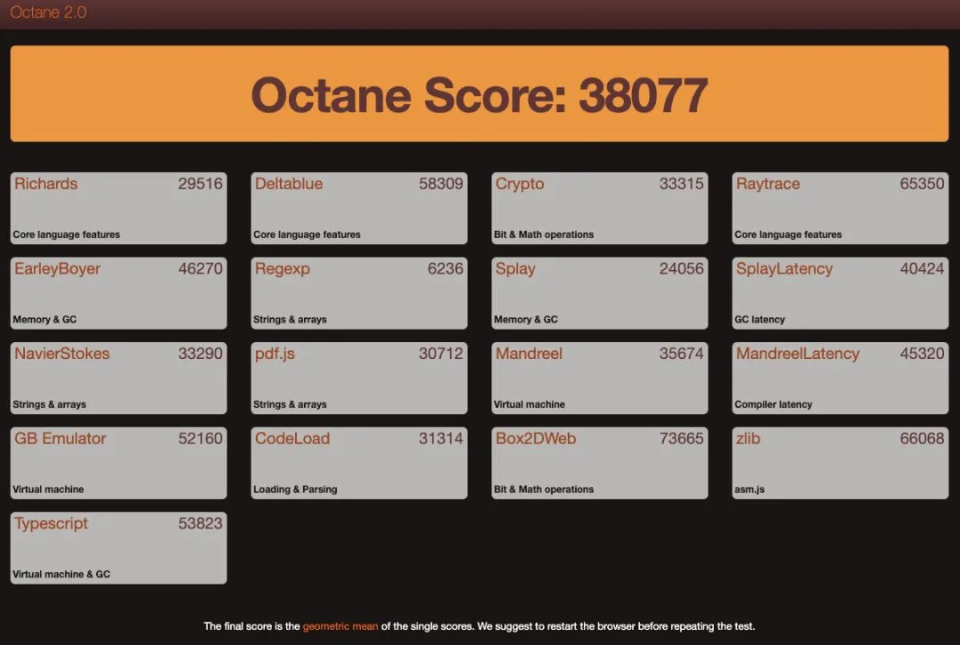 机哥用比较常见的 Javascript 测试,跑完结果如下: