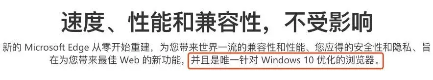 毕竟机哥再 Edge 的官网上,看到这么一句话:Edge 是唯一针对 Windows 10 优化的浏览器。