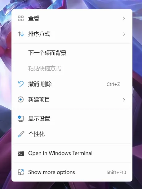 没有了刷新选项,但是点击上图中最后一个Show more options 会切换会原来win 10 的那样。