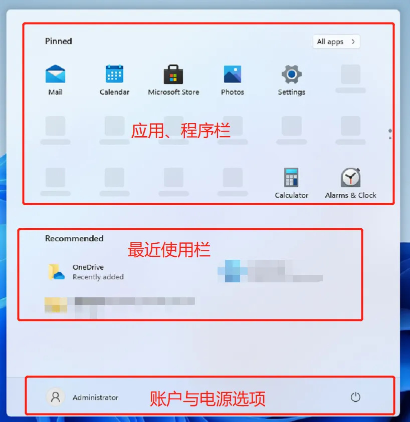 开始菜单从列表模式变成了平铺,并且整体分成三个模块。
