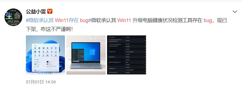 另外,微软检测电脑能否升级Windows 11的那个工具存在bug。