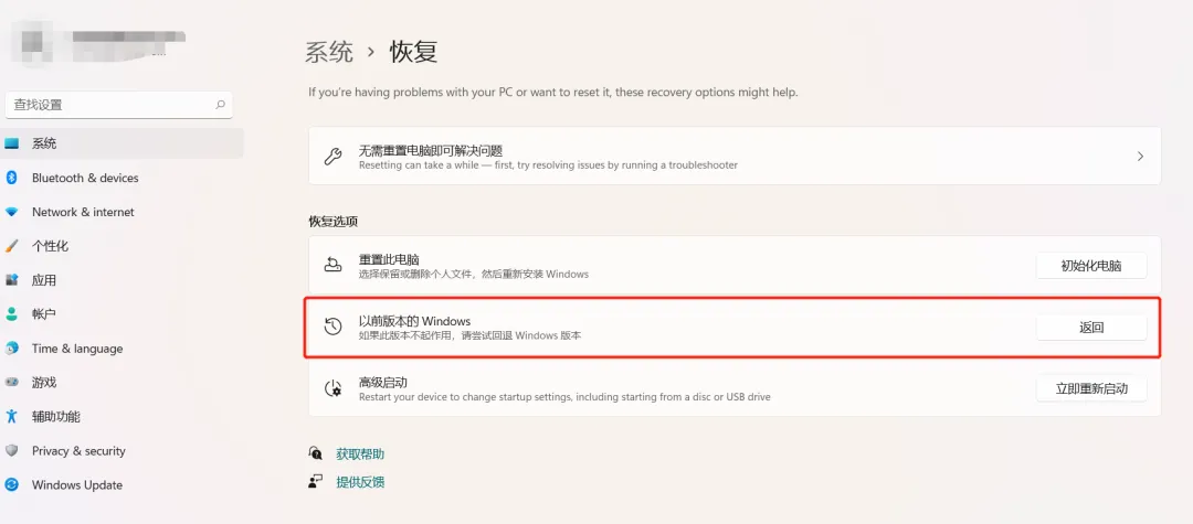 如果你体验过后感觉不是很好用,也可以回退到更新之前的windows 10 。