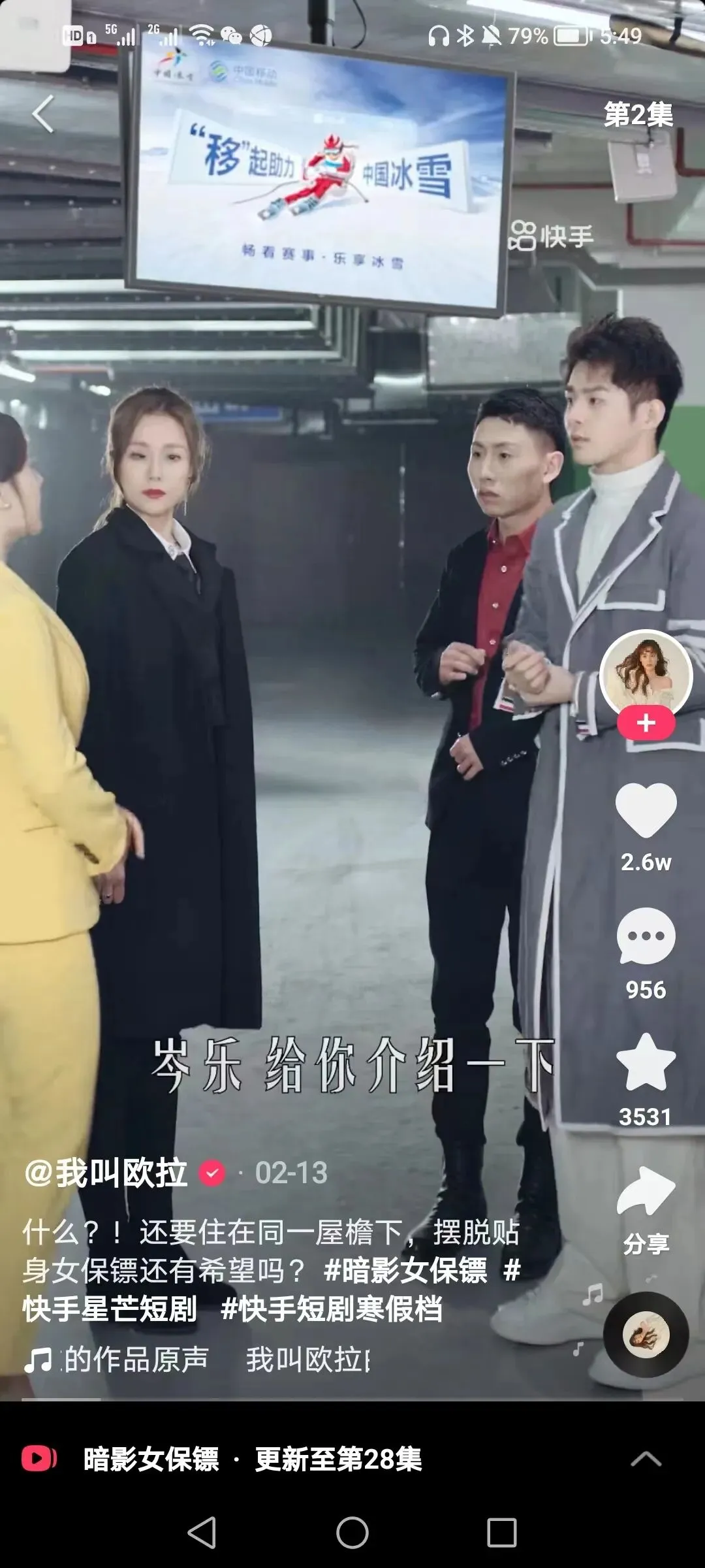 比如中国移动通过AI后植入的形式,在冬奥会期间植入快手短剧《暗影女保镖》。当作为保镖的女主救下偶像巨星时,背景车库里的显示屏正在播放“移起助力中国冰雪”的广告,非常应景。