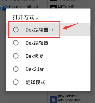 4、这里也可以选用下图第二个的DEX编辑器,但DEX++更强大些,所以这里以++介绍;