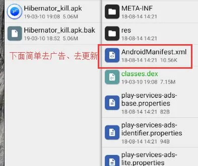 8、保存完之后,就去掉了谷歌广告,去更新的话最直接的方法是在刚才Androidmanifiest.xml中前几行(version那边)修改版本号为999。只要修改版本号>原版号即可。当然这仅为基础做法,并非全部通用。有的是在dex中去升级,请具体问题具体对待!