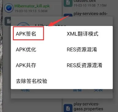 签名步骤:点击软件→功能→APK签名→默认签名,确定。