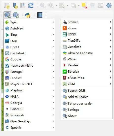 QuickMapServices:(注意安装后点击settings,选择 more services,点击 get contribued parck,更新到最全地图底图)可获取全部互联网地图图源。