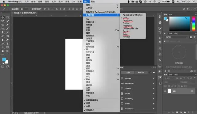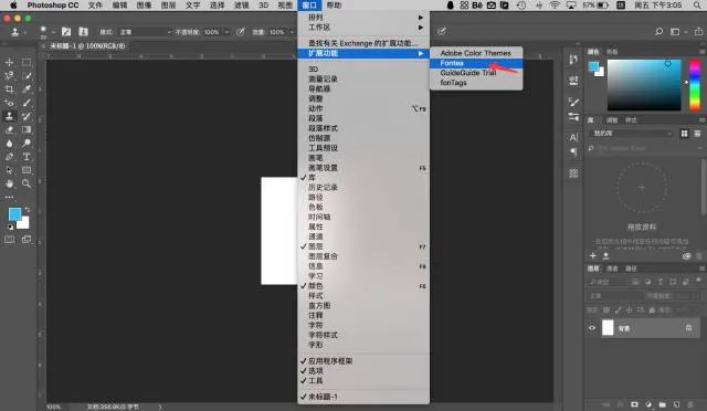 2、打开Photoshop,在窗口下的扩展功能中可以找到安装好的Fontea: