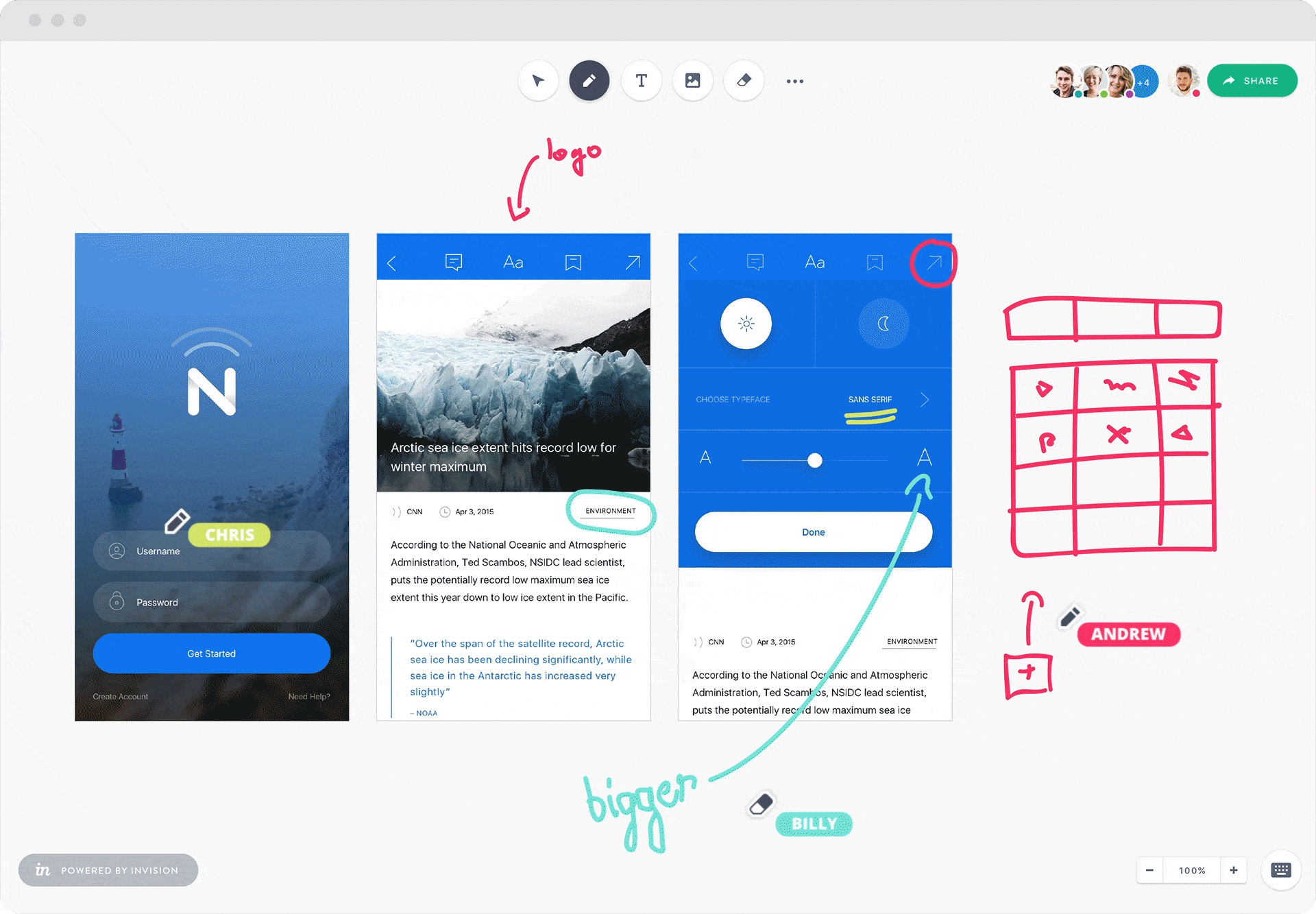 Freehand可以作为团队合作、标注工具使用,需注册登录InVision账号: