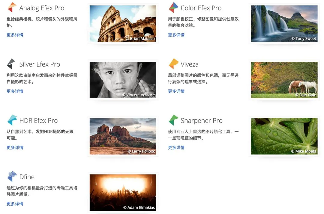 2、Google Nik Collection 是一款强大专业的图像处理滤镜插件集,通过里面的6款滤镜插件,可以快速完成专业级的修图效果: