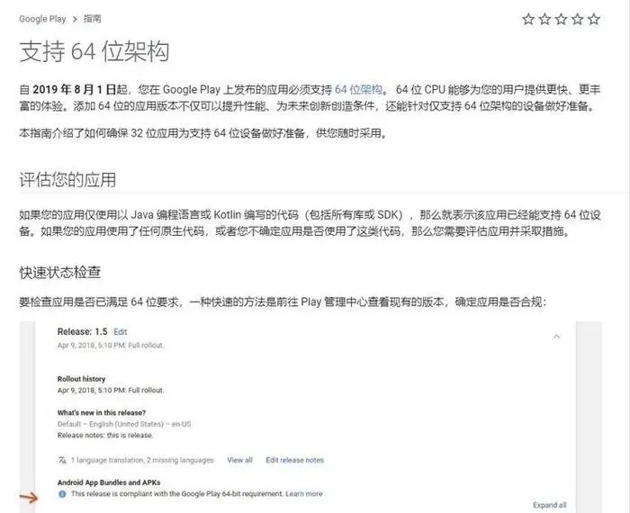 Google Play商店两年多前已经禁止32bit应用上架,国内安卓生态较之滞后