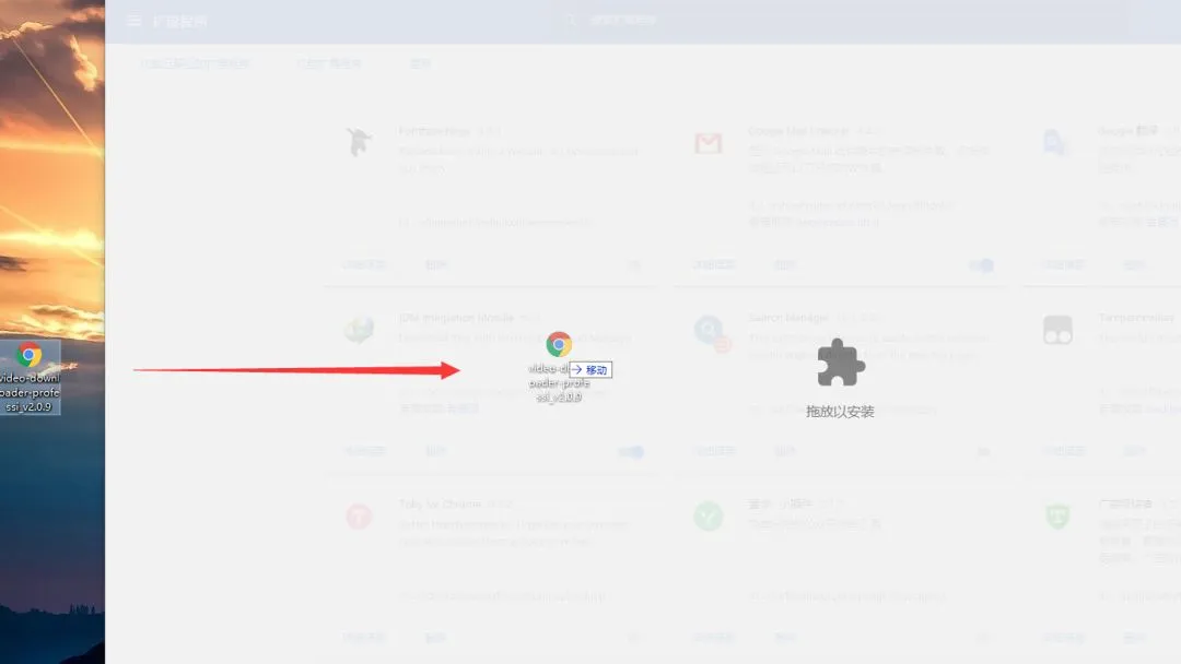 将扩展程序拖拽到浏览器扩展工具管理界面