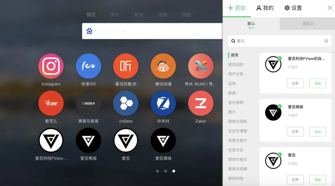 如果你是爱否真爱粉的话,关注了微博和微信还不过瘾,在这里,你甚至可以搜索并添加四个爱否的官方网站。