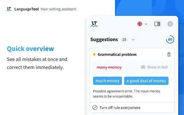 这个插件可以在线识别你的拼写错误并提供修改建议;当你在网页上写邮件/写文章时,都可以帮助你校对内容;你也可以选择将word内容粘贴进该插件进行检查。