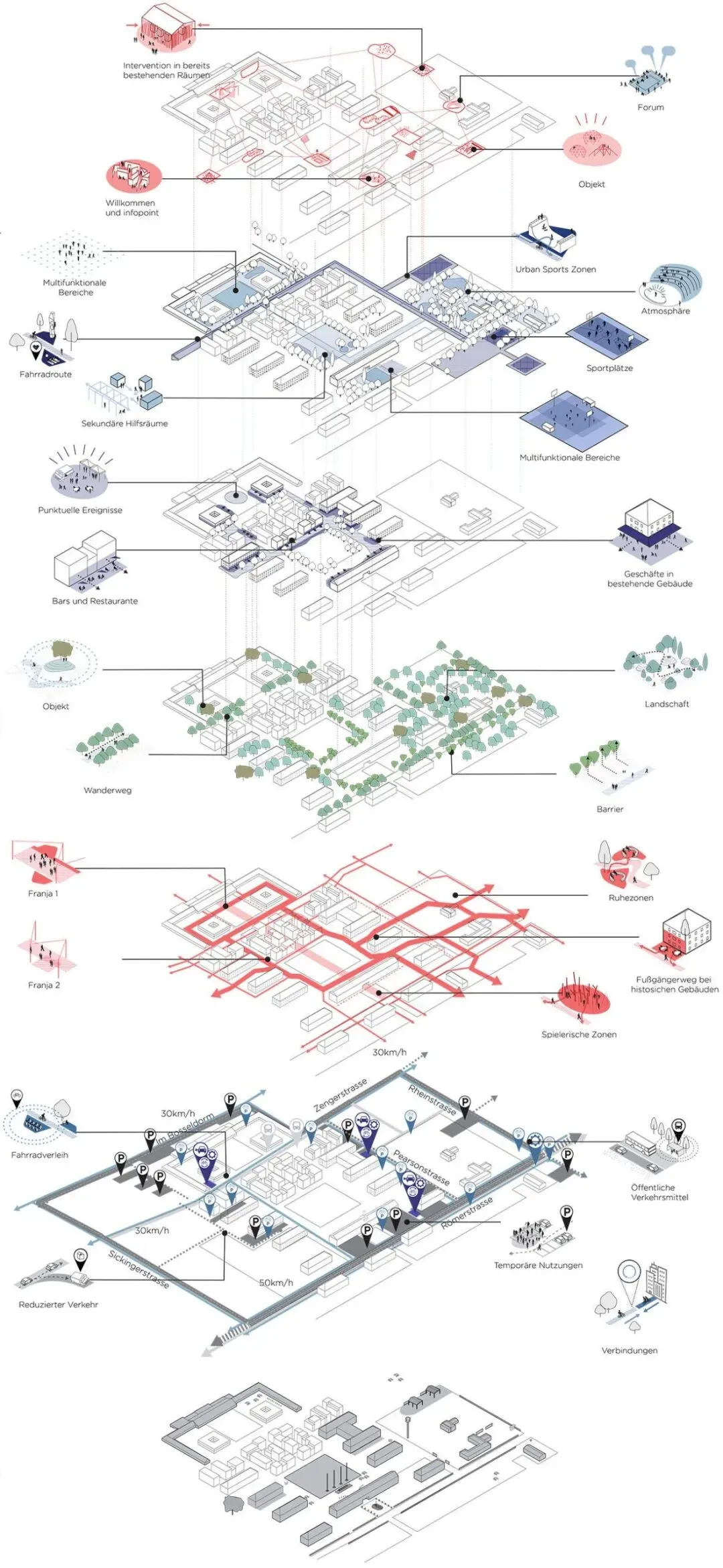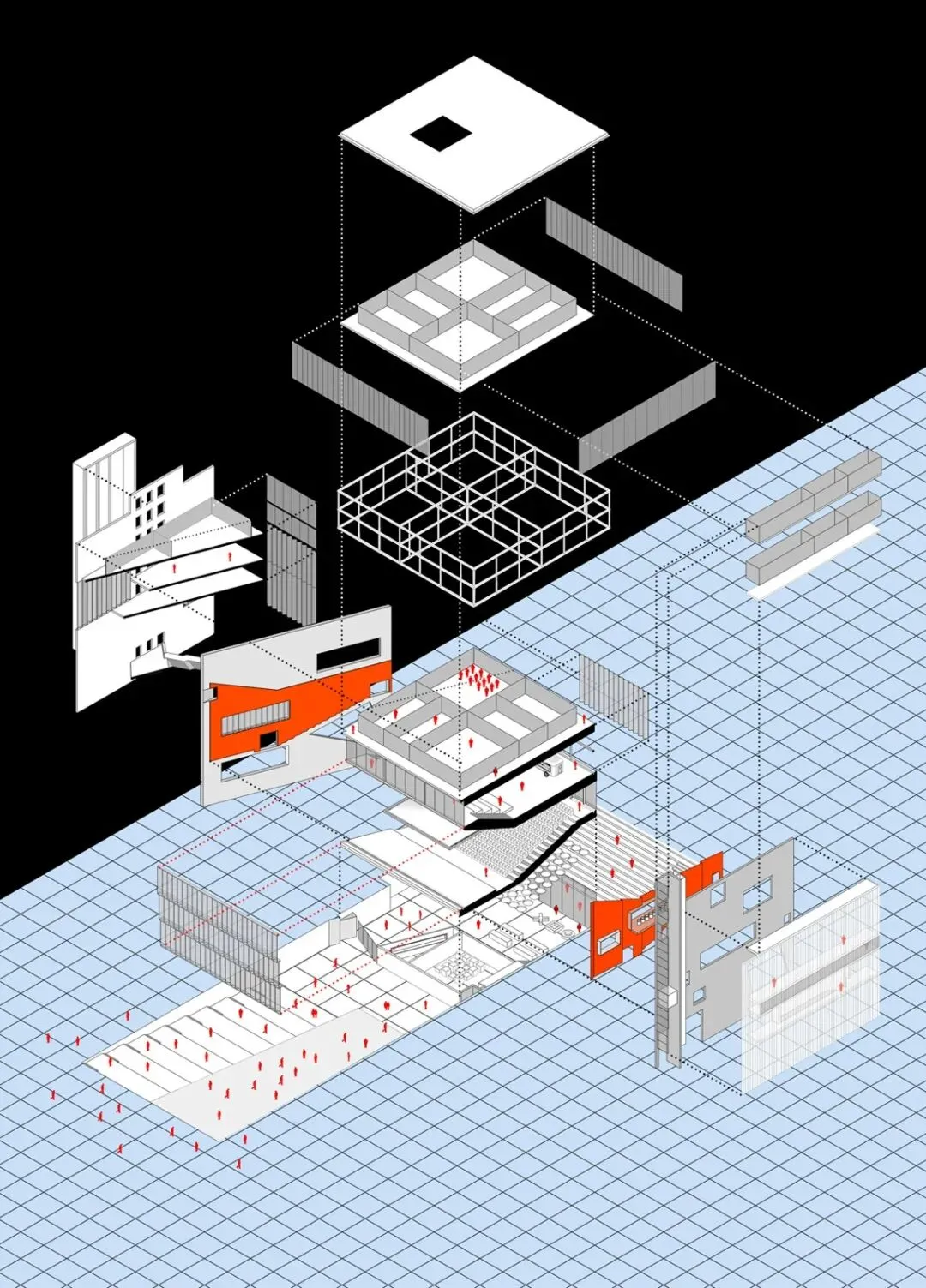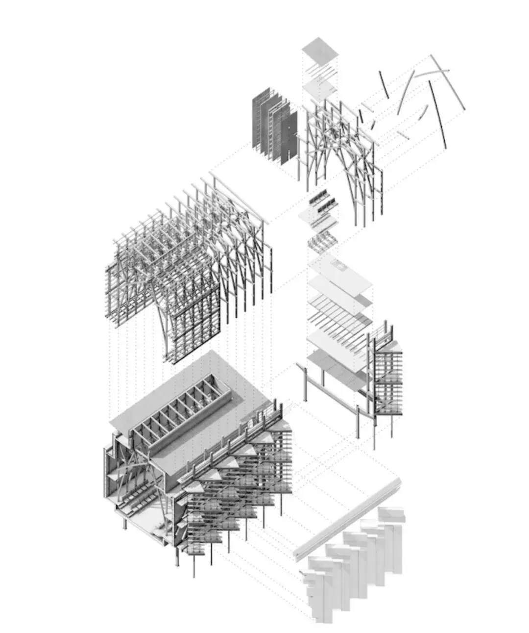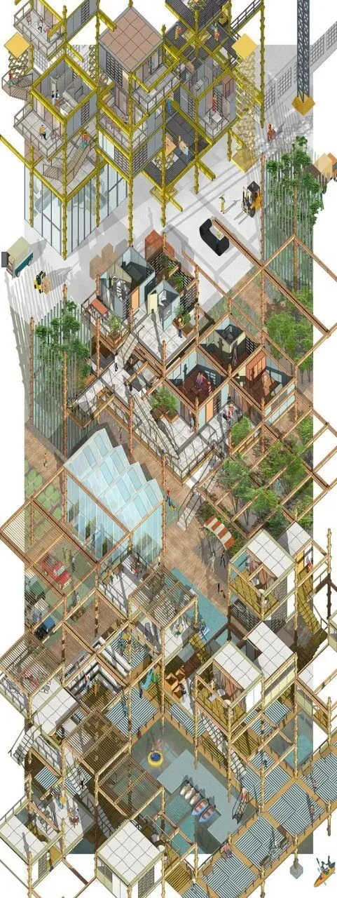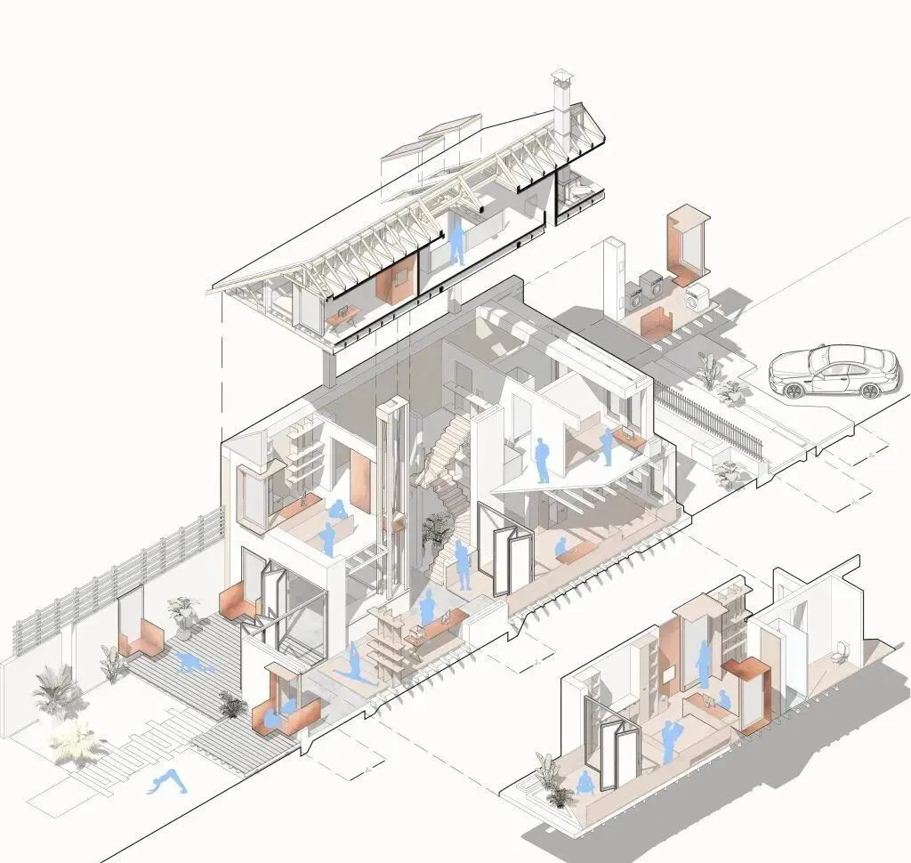以上就是我们经常见到的轴测图,轴测图一旦入坑,极其容易上瘾,其清晰的表达手法在建筑设计中大展手脚,那接下来,小编就给大家带来一个超级神奇的插件,可以在su中一键生成各种角度的轴侧图!