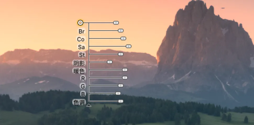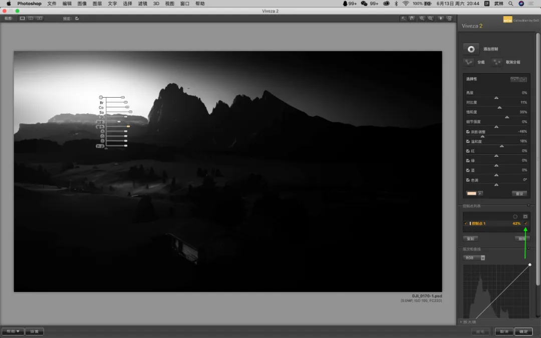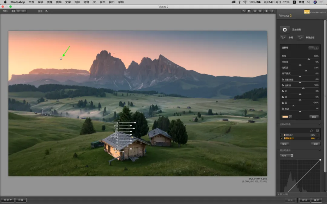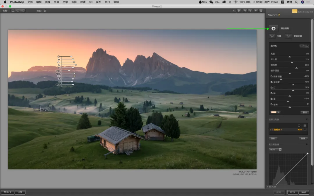 这是 Collection 3 官网更新放在第一位的介绍,通过添加控制点功能,控制局部,并且控制亮度、对比度、饱和度、细节强度、阴影调整、温和度、红、绿、蓝、色调…说的直接简单点就是既可以整体调整,还可以控制局部。① U POINT局部控制技术(整体调整也可以不说了)核心技术,局部控制点控制各个方面当你选择添加控制时,用鼠标放在画面的任意位置,就会出现如下图所示的调整界面。每一个滑块都可以调整,几乎覆盖了你想要调整的所有功能。