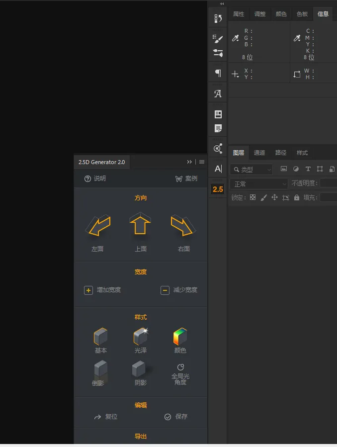 群友分享了一个2.5D PS插件下载一键生成立体图形,他们说很好用,喜欢的朋友友可以下载安装试一把,群友们都安装上了。