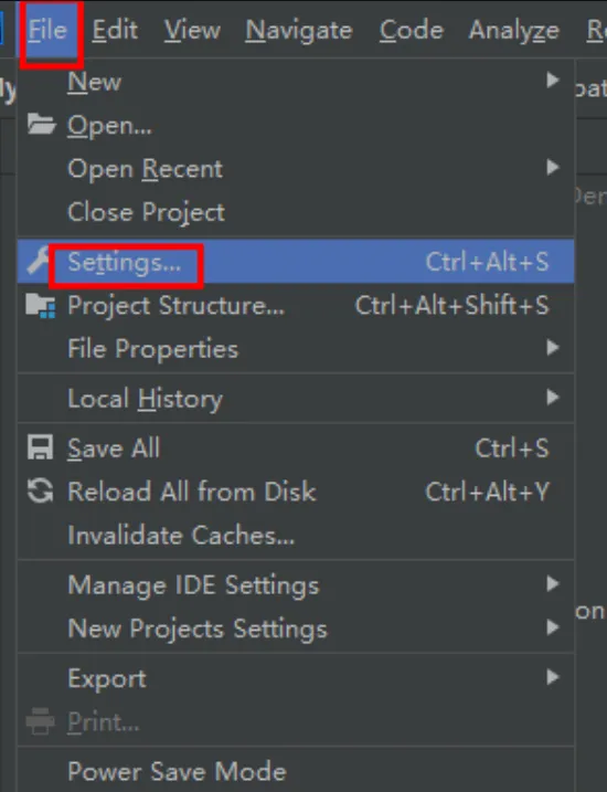 1、选择“File”→”settings…”