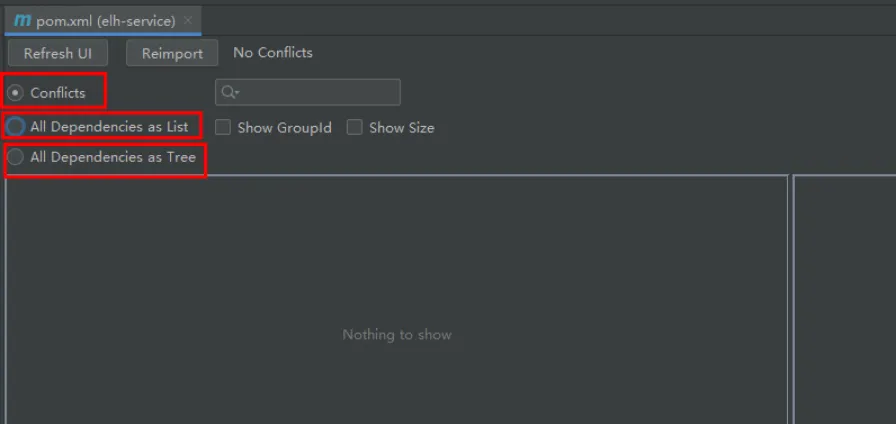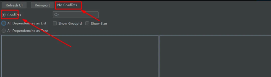 3、当没有依赖冲突或者解决依赖冲突时,当选择Conflicts时,右上角会多了个“No Conflicts”