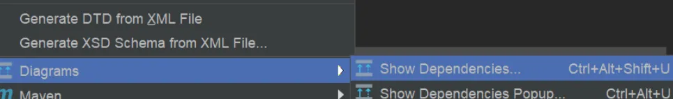 ①:点击项目里面pom.xml文件,然后右击选择【Diagrams】-【Show Dependencies】