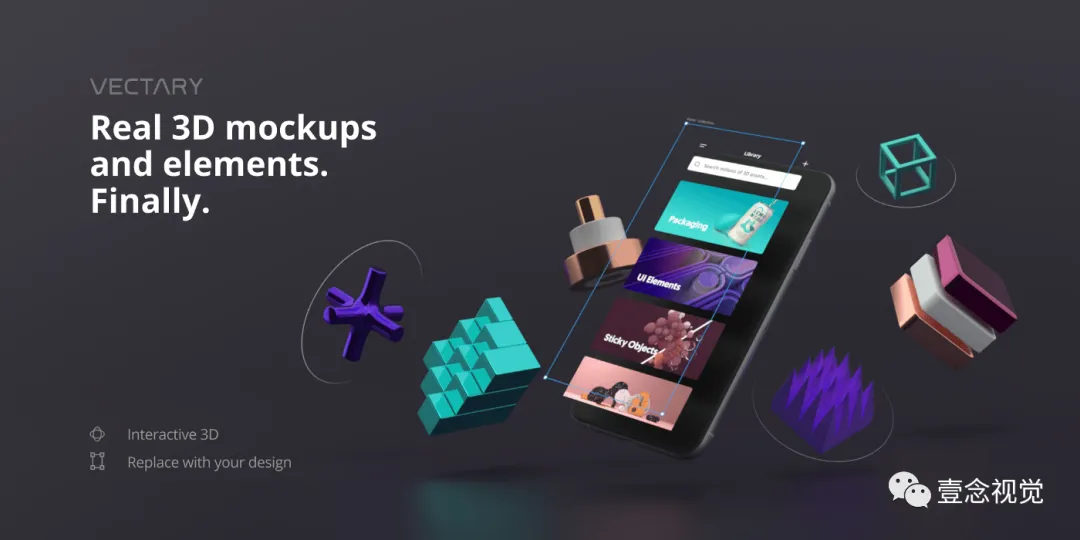 Vectary 3D 是一个超级好用的样机工具,只需要简单的点击即可将你的 Frame 添加到 3D 的画布当中,让你的界面和各种3D的物品结合到一起,非常好用。