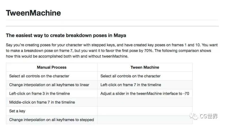 做动画什么最耗时?当然是关键帧动画。那这个名为TweenMachine的Maya插件就来解决这个问题的,它可以大大简化在关键姿势之间创建分解姿势的过程。大大减少了使用步幅为角色创建姿势所需的步骤。开发者说TweenMachine可以创建完美的分解姿势,但也表示“它可以比其他方法更快地帮助你接近目标”。