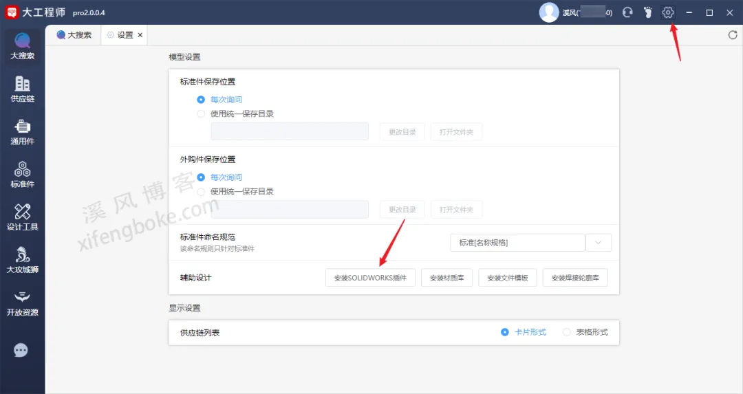 点击设置,然后点击安装SolidWorks插件。