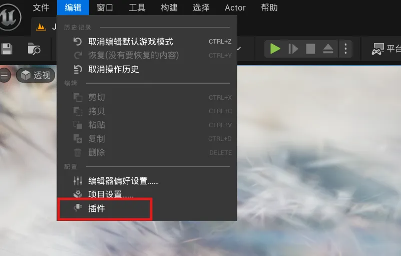 从主菜单选择编辑(Edit)>插件(Plugins);