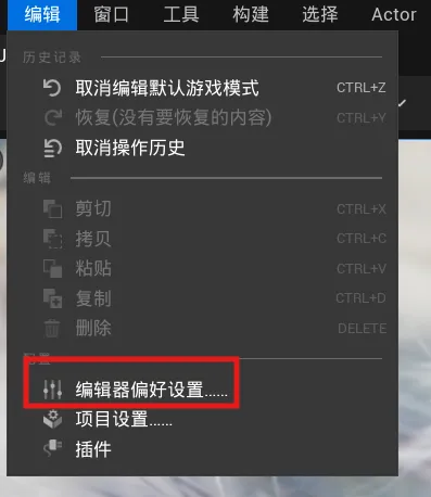 在主菜单中选择编辑(Edit)>编辑器偏好设置…(Editor Preferences…);