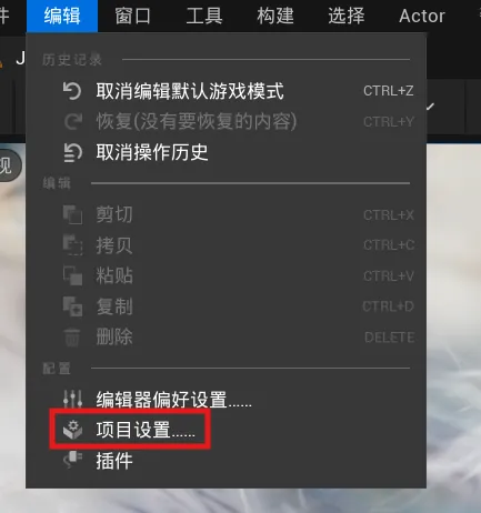 接下来进入菜单栏的编辑(Edit)>项目设置(Project Settings);