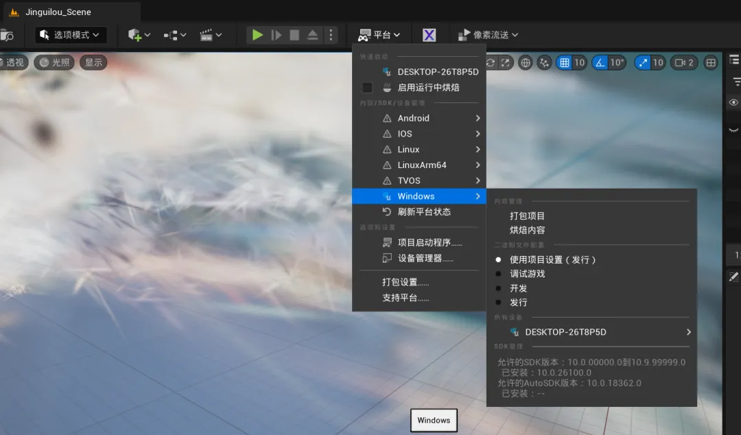 接下来需要对项目进行打包,打包后再进行像素流推送,不打包的话也可以直接推送,操作很简单,文末会讲。