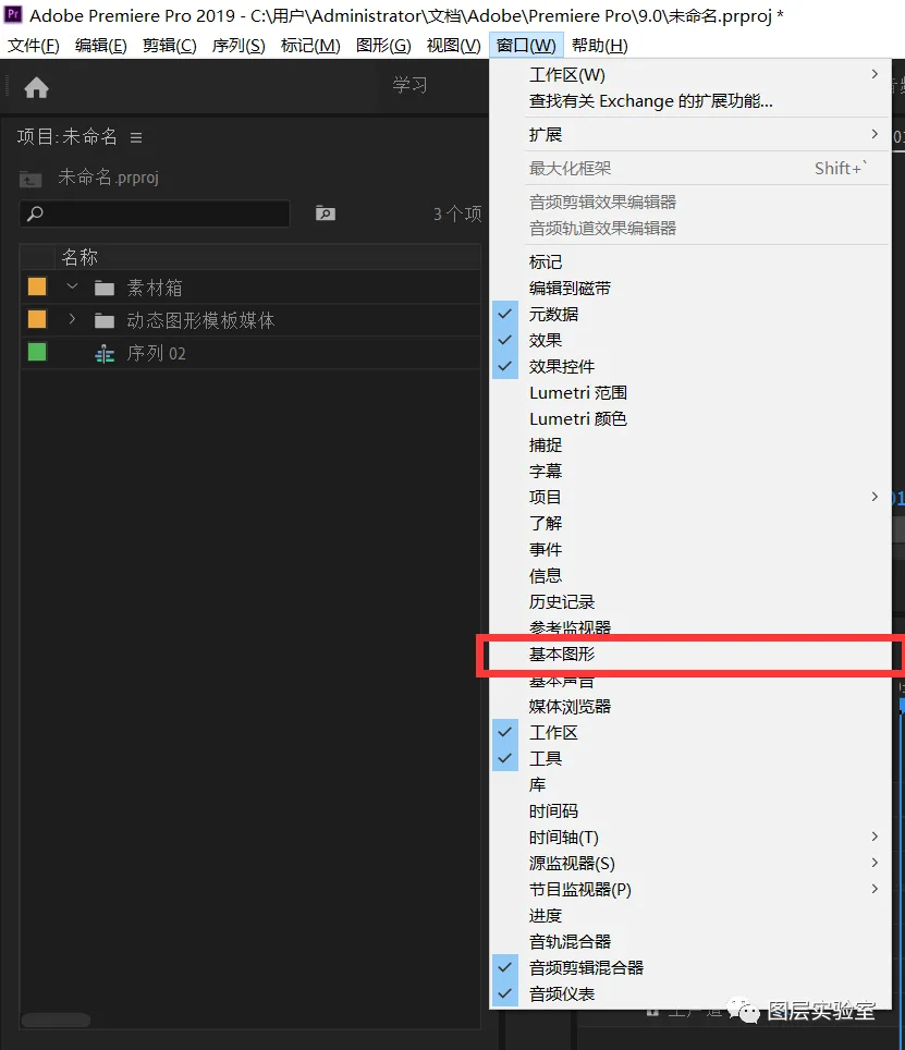 安装成功,以后使用请打开PR软件,在【窗口】-【基本图形】里即可找到预设
